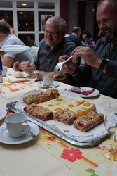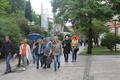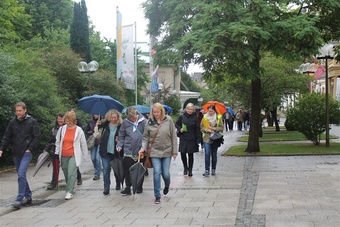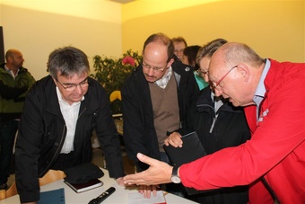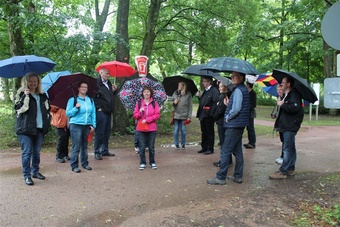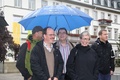 von links: Domkapitular Clemens Bieber, Wolfgang Meixner und Rainer Ziegler besprechen die erste Etappe des Wallfahrtsweges.