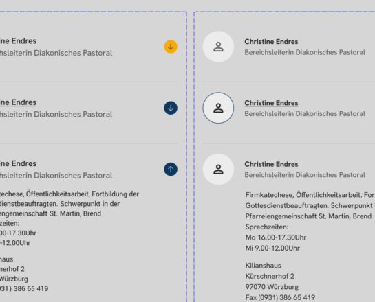 Einzelne Kontakte haben eine große Ansicht, mehrere Kontakte werden innerhalb eines Akkordeons dargestellt. In Containern sind unterschiedliche Hintergründe möglich.